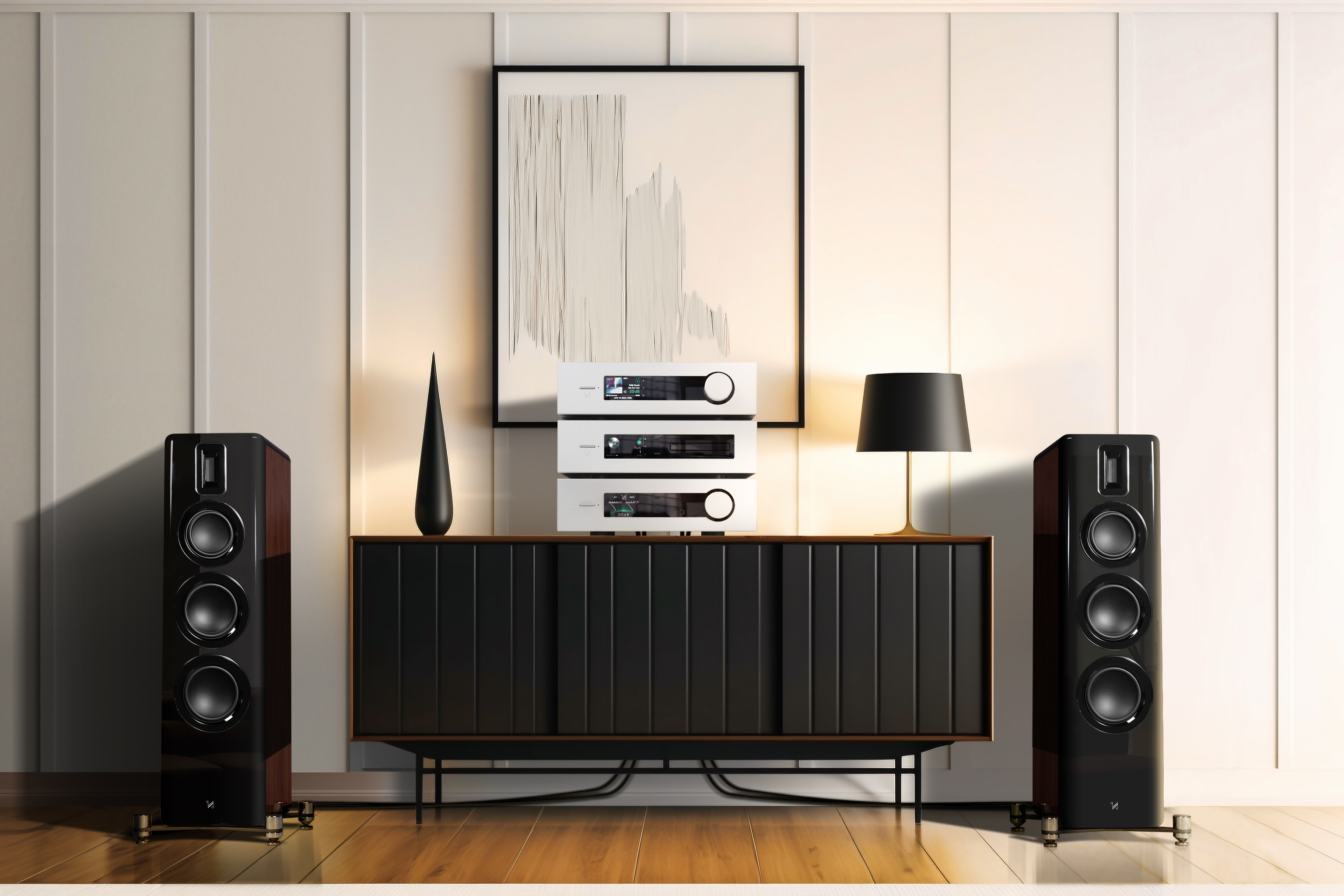 QUAD Platina CDT, Platina Stream and Platina Integrated (black) with Revela 2 speakers
