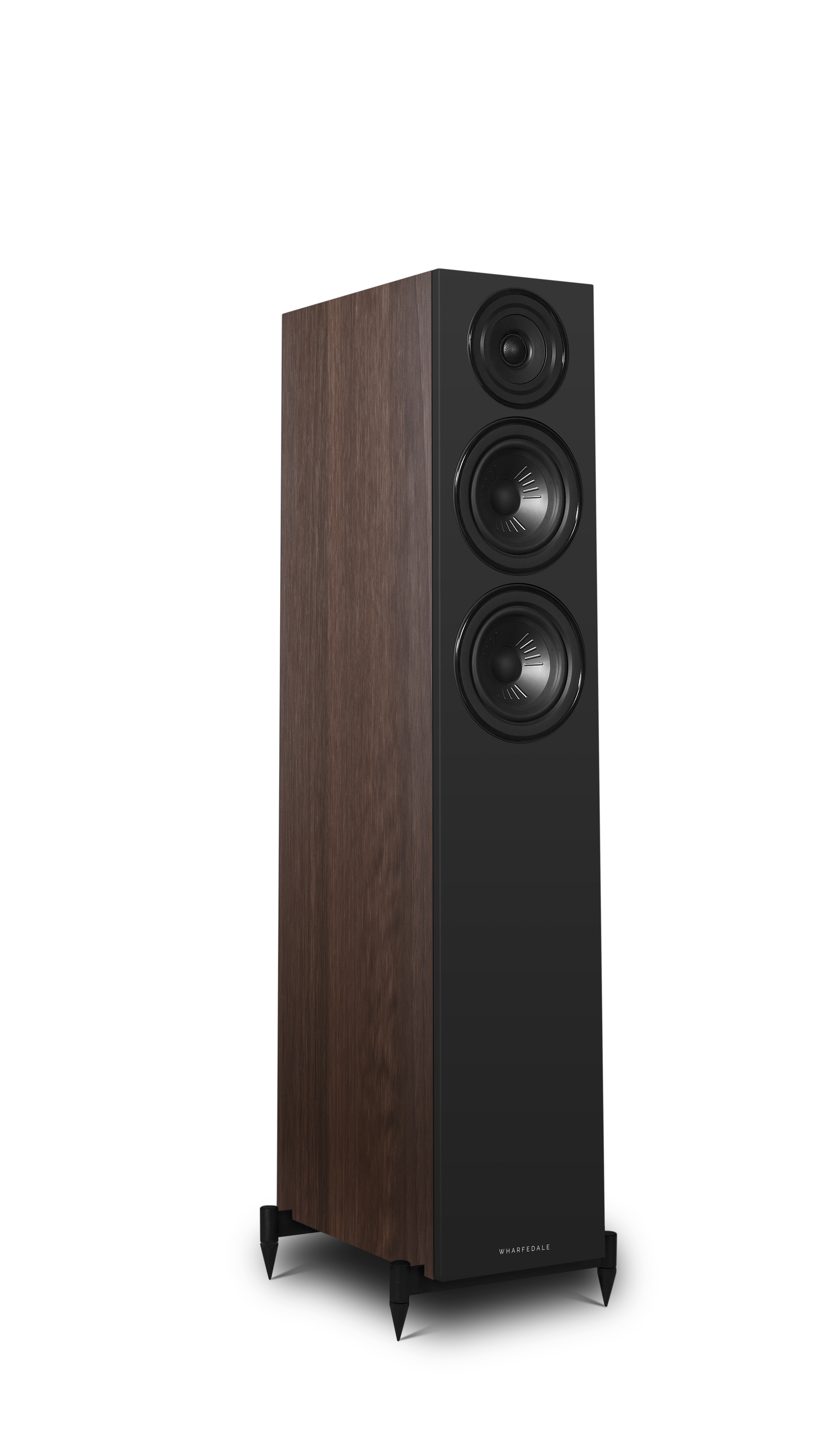 Diamond 12 3D on top of Diamond 12.3 floorstander (walnut, side)